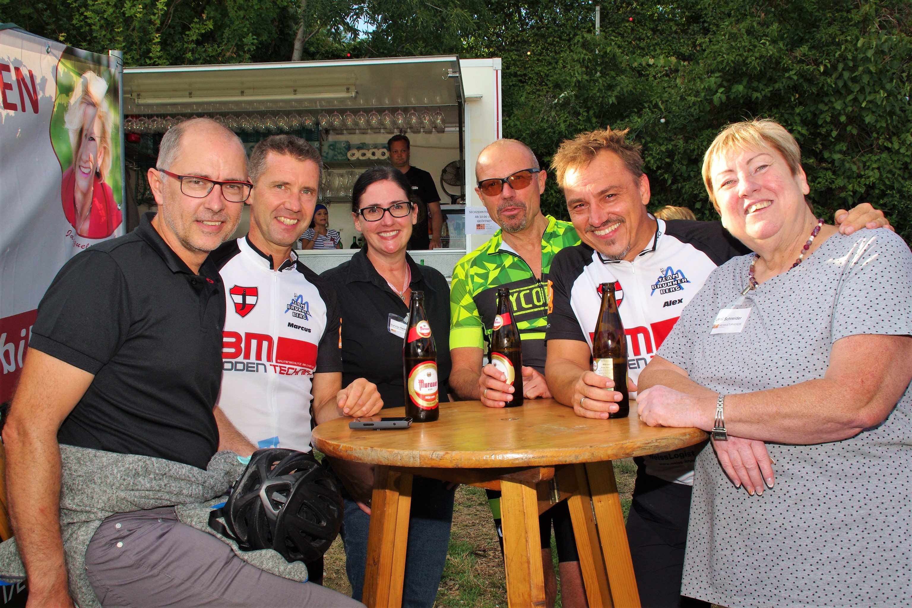 Viele Stammgäste wie vlnr Werner Plank, Marcus Kammerer, Alexander Neidhart und Ernst Brunner kamen zum Weinfest und plauderten mit Sylvia Hastenteufel und Leni Schneider.